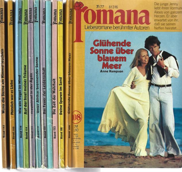 Romana 1977 - 11 RomanhefteNr. 108,118,122,123,125,131,133,135,136,140 + 145.Cora Verlag 197711 Romanhefte á 130 SeitenFormat: 13,5 x 19x 7cmZukunft: gut, leichte Gebrauchsspuren