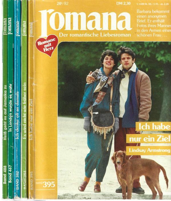 romana 5 Romane von 1982Nr. 395,384,382,467,488.Cora Verlag 19825 Romanhefte á 128 SeitenFormat: 13,3 x 18,3 x 0,5 cm x 5 StückZustand: gut, leichte Gebrauchsspuren