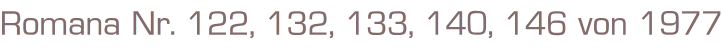 Romana Weite Welt & Grosse Liebe Romana Hefte 5 Stück Romana Nr. 122, 132, 133, 140, 146 von 1977Cora Verlag 5 Heft, Softcover, 127 Seiten Format: 13 x 18 x 3 cm Zustand: gebraucht, gut