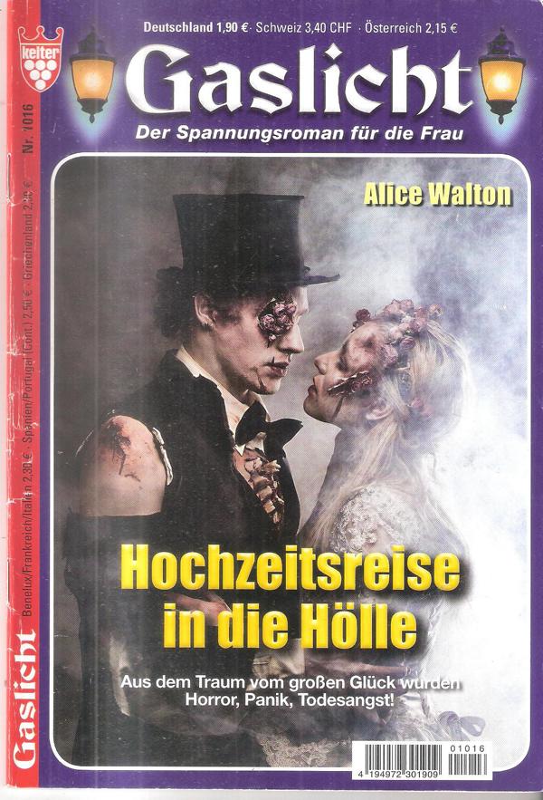 Der Spannungsroman für FrauenGaslicht Nr. 1016Titel: Hochzeitsreise in die HölleRoman um Liebe und GeheimnisAutor: Alice WaltonKelter Verlag Romanheft, 65 SeitenFormat: 15,5 cm x 22,5 cmZustand: gut,
