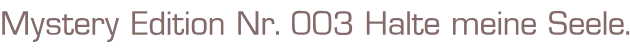 Mystery Edition Nr. 003 Halte meine Seele.von: Rachel VincentVerlag: Cora Verlag Hamburg 2013Taschenbuch 319 SeitenFormat: 12,5 x 18 x 1,5 cmZustand: gebraucht, gut