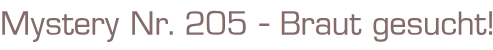 Mystery Nr. 205Titel: Braut gesucht!Autor: Terry Leigh KingVerlag: Cora 2002Taschenbuch, 127 SeitenFormat: 12,5 x 18 x 0,6 cmGewicht: 90 gZustand: gebraucht, gut,Seite 3 mit Stempel