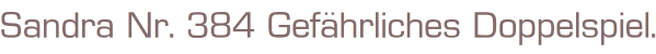 Sandra Nr. 384 Gefährliches Doppelspiel.von Judith ParkerVerlag: Pabel Verlag Rastatt Taschenbuch 129 SeitenFormat: 12,5 x 18 x 0,5 cmZustand: leichte Gebrauchsspurenam Cover