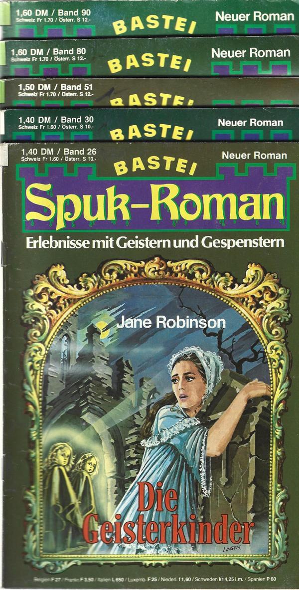 Fünf Romanhefte Nr. 26 Die Geisterkinder von Jane Robinson Nr. 30 Das Schloß der gespenster von Linda Morrison Nr. 51 Der Geisterglöckner von Barbara Branch Nr. 80 Das Gespensterkonzert von Irsula Pauly Nr. 90 Der Geisterwolf von Lilian O`Connor