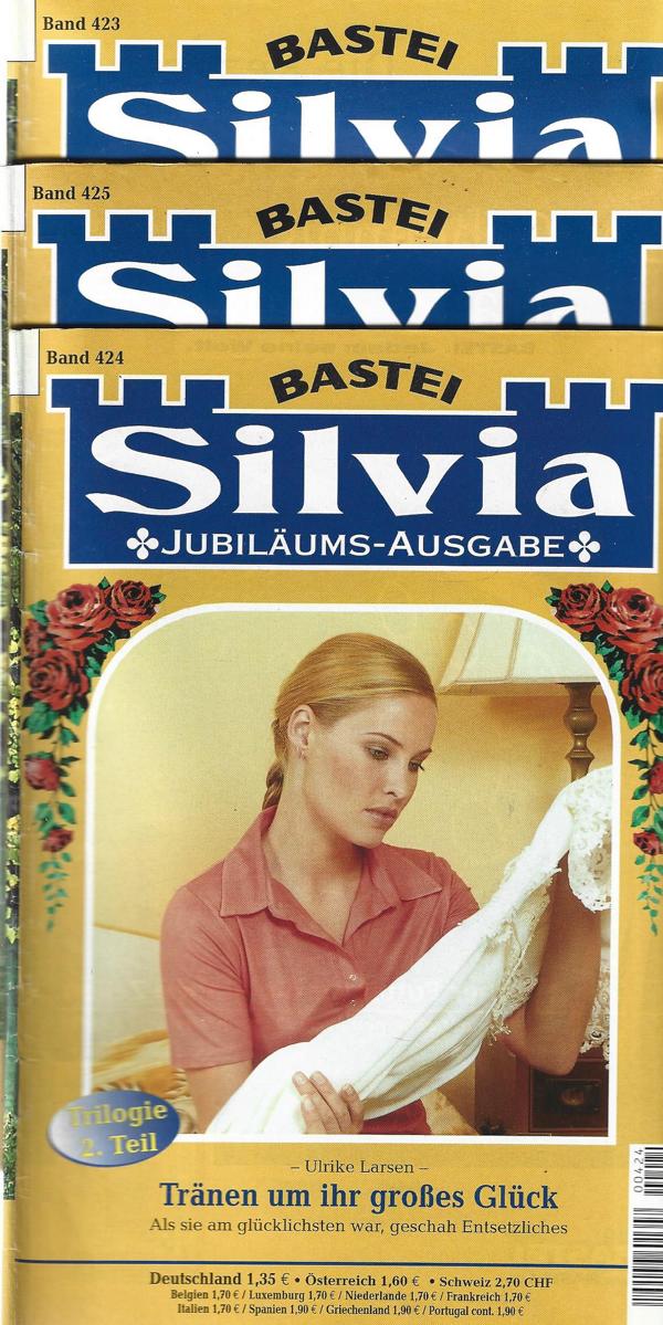Silvia Jubiläumsausgabe Triologie 1-3 TeilNr. 423 Teil 1. Ein Frühling voller Zärtlichkeit.Nr. 424 Teil 2. Tränen um ihr großes Glück.Nr. 425 Teil 3. Komm zu mir in den 7. Himmel.Bastei Verlag3 Romanhefte á 64 SeitenFormat: 15,5 cm x 22,5 cm x 10 StückZustand: sehr gut