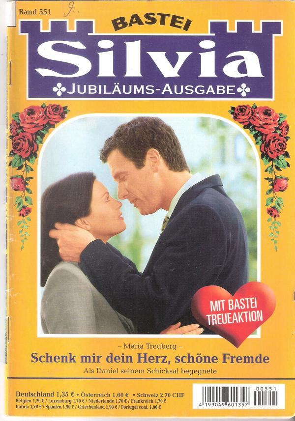 Romane um die Macht der LiebeSilvia Jubiläums-Ausgabe Nr. 551Titel: Schenk mir dein Herz, schöne FremdeAutor: Maria TreubergBastei Verlag Romanheft, 65 SeitenFormat: 15,5 cm x 22,5 cmGewicht: 60 gZustand: gut