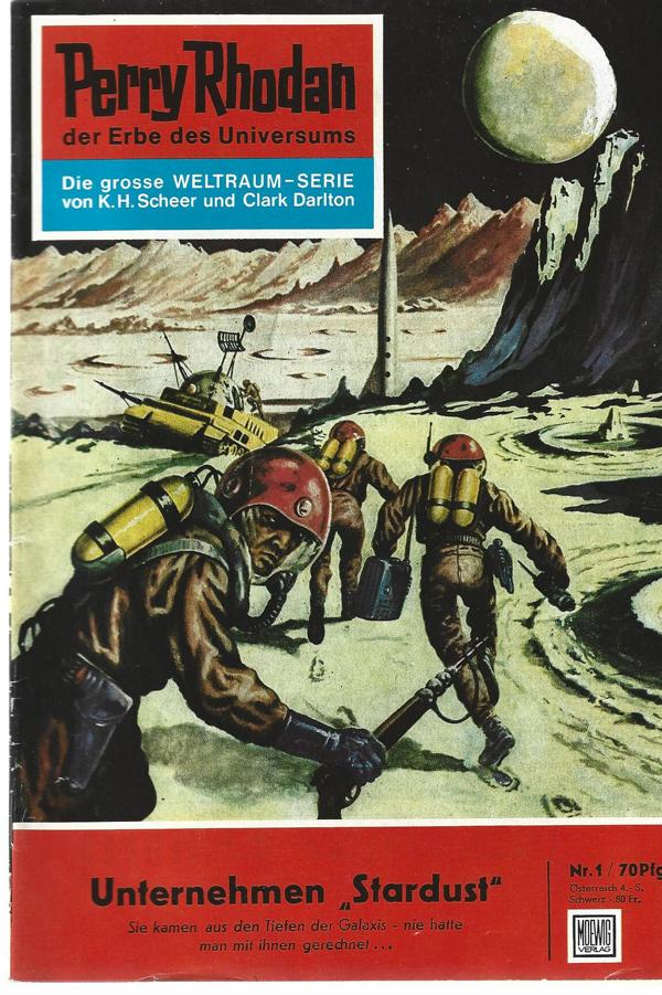 Perry Rhodan Nr. 1 Unternehmen "Stardust"Perry Rhodander Erbe des UniversumsDie große Weltraum-Serie von K.H.Scheer und Clark DarltonVerlag: MoewigRomanheft, 63 SeitenFormat: 15 x 22,5 cmZustand: sehr gut, Seite 1 mit Stempel