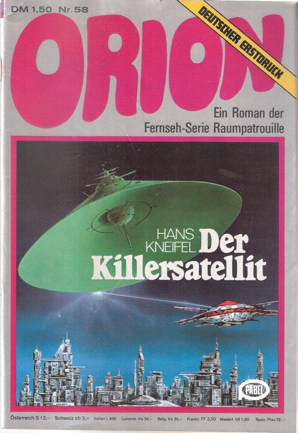Titel: Orion Nr. 58 - Der Killersatellit Ein Roman der Fernseh - Serie Raumpatrouille Autor: Hans Kneifel Verlag: Kiepenheuer & Witsch 1970Heft, 63 Seiten Format: 15,5 cm x 22 cm Gewicht: 67 gZustand: gebraucht, gut