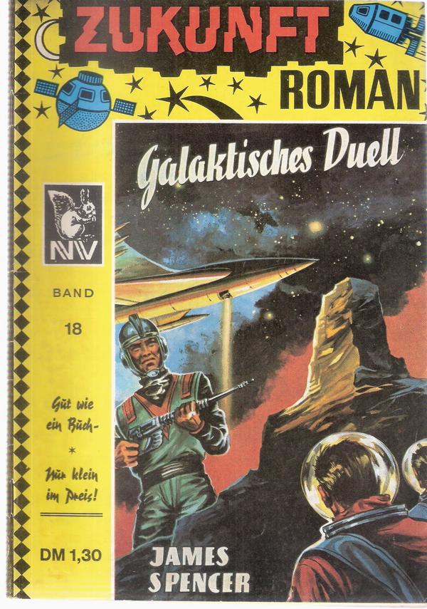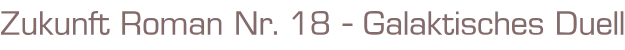 Titel: Galaktisches DuellAutor: James SpencerSerie: Zukunft Roman Nr. 18Verlag: Neuzeit Verlag, Pilsting-GanackerFormat: 15 x 22 cmGewicht: 67 gZustand: gut, mit leichten Gebrauchsspuren