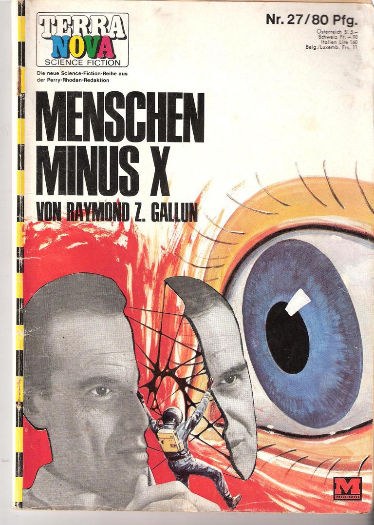 Utopische Romane - Science Fiction - SFTitel : Menschen Minus XAutor: Raymond Z. GallunVerlag: MoewigRomanheft, 62 SeitenFormat: 15,5 cm x 22,5 cm Gewicht: 75 gZustand: Papier nachgedunkelt, Eselsohren, teilweise fleckig