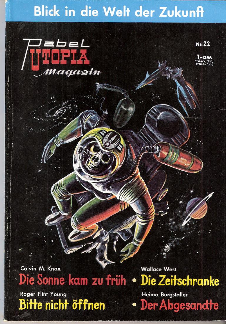 Blick in die Welt der ZukunftDeutschlands erstes Science-Fiction-MagazinPabel Utopia Magazin Nr. 22Titel: Die Sonne kam zu frühAutor: Calvin M. KnoxTitel: Die ZeitschrankeAutor: Wallace WestTitel: Bitte nicht öffnenAutor: Roger Flint YoungTitel: Der AbgesandteAutor: Heimo BurgstallerVerlag: PabelRomanheft 93 SeitenFormat: 14 cm x 20,5 cmGewicht: 95 gZustand: Heftrücken oben und unten beschädigt, sonst sehr gut erhaltenes Exemplar Romanhefte SF - Utopia