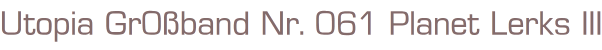 Utopia Großband Nr. 61Titel: Planet Lerks IIIAutor: Clark DarltonVerlag: Erich PabelRomanheft 94 SeitenFormat: 14 cm x 20,5 cmZustand: Gut erhaltenes Exemplarmit leichten Gebrauchsspuren,Papier leicht nachgedunkelt.