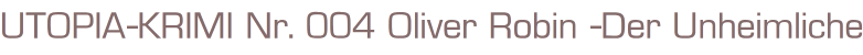 Utopia Krimi Nr. 4Titel: Der UnheimlicheAutor: Robin OliverDer utopisch-phantastische KriminalromanVerlag: Erich PabelRomanheft 94 SeitenFormat: 15 cm x 22,5 cmGewicht: 106 gZustand: Papier leicht nachgedunkelt,sonst gut erhaltenes ExemplarRomanhefte - Utopia-Krimi