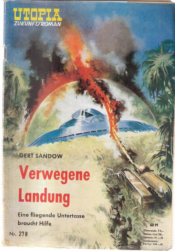 Utopia Zukunftsroman Nr. 278Titel: Verwegene LandungEine fliegende Untertasse braucht HilfeAutor: Gert SandowVerlag: Erich PabelRomanheft 64 SeitenFormat: 15 cm x 22,5 cmGewicht: 109 gZustand: gut, mit leichten Gebrauchsspuren,