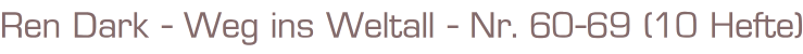 Ren Dark Nr. 60 - 69 - Weg ins Weltall - 10 Stück RomanhefteVerlag: KelterFormat: 15 x 22,5 x 3,5 cmGewicht: 646 gZustand: gut, mit leichten Gebrauchsspuren