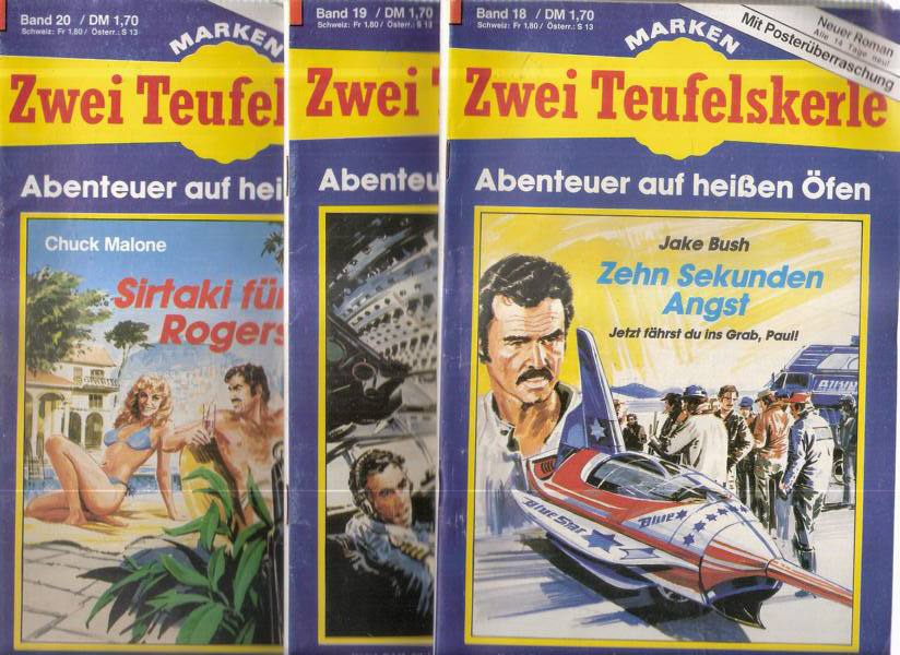Zwei Teufelskerle Nr. 18 / 19 / 20 Abenteuer auf heißen Öffen3 Romanhefte Bd. 18) Zehn Sekunden Angst von Jake BushBd. 19) FrsnkfurtAirport von Chuck MaloneBd. 20) Sirtaki für Rogers von Chuck MaloneEinzelheftgröße 22,5 cm x 15 cmBastei VerlagZustand: gut
