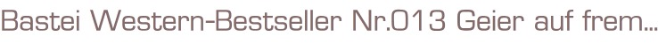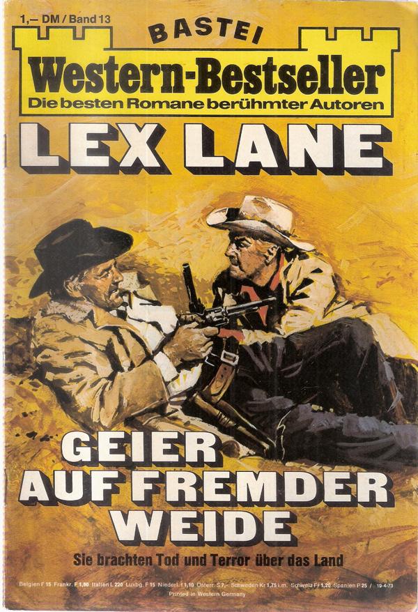 Bastei Western-Bestseller Nr. 13 Titel: Geier auf fremder WeideAutor: Lex LaneVerlag: Bastei Verlag Berg. Gladbach 1970Romanheft 63 SeitenFormat: 15,5 x 22,5 cmGewicht: 70 gZustand: leichte Gebrauchsspuren