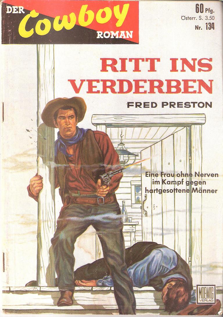 Der Cowboy Roman Nr. 134Titel: Ritt ins VerderbenAutor: Fred PrestonVerlag: Moewig 1959Romanheft 62 SeitenFormat: 15,5 x 22,5 cm Gewicht: 70 gZustand: gebraucht, gutWestern Romanheft