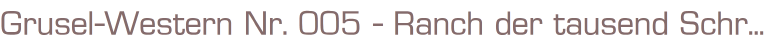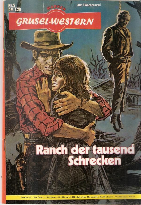 Grusel Western Nr. 5Titel: Ranch der tausend SchreckenVerlag: Marken Verlag, KölnRomanheft 64 Seiten Format: 15,5 x 22,5 cmGewicht: 69 gZustand: gut, leichte Gebrauchsspuren