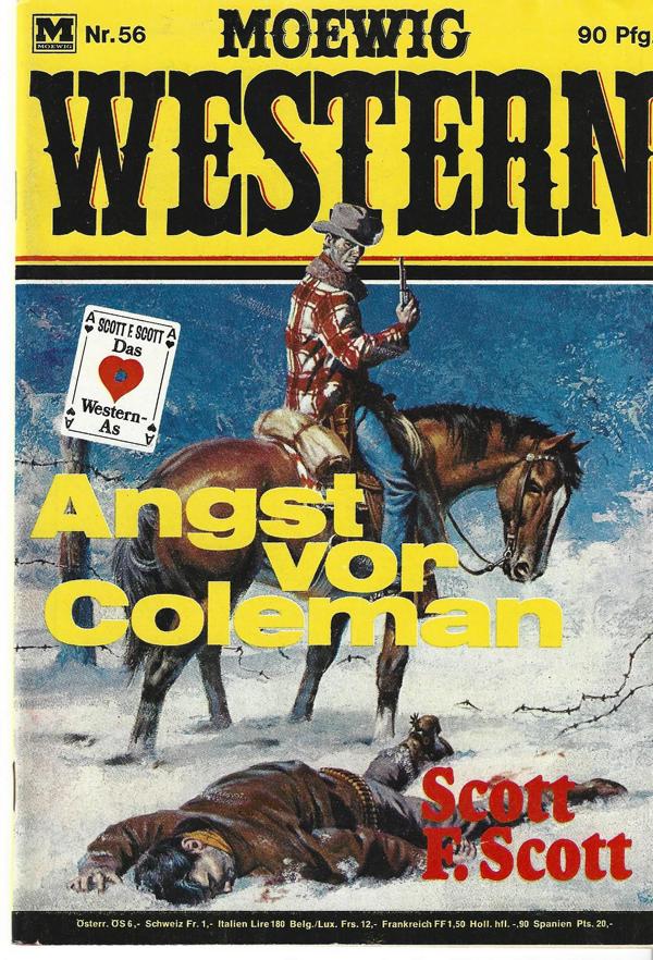 Titel: Angst vor Coleman.Autor: Scott F. ScottVerlag: Moewig, München 1970Romanheft, 63 SeitenFormat:15,5 x 22,5 cmZustand: sehr gut
