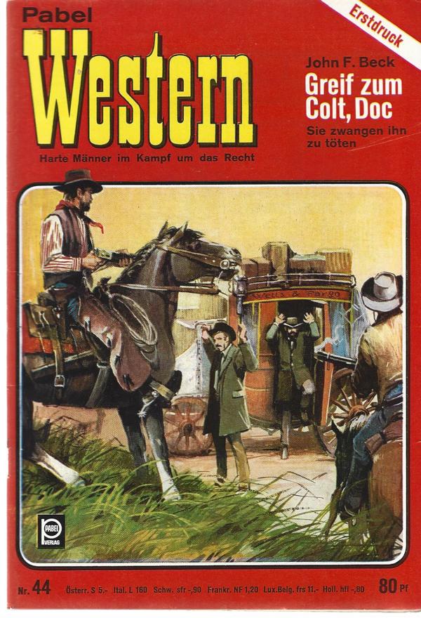 Pabel Western Nr. 044 Greif zum Colt, Doc.von: John F. BeckVerlag: Erich Pabel Verlag, Rastatt 1976ErstdruckRomanheft 65 SeitenFormat: 15,5 x 22 cmZustand: sehr gut