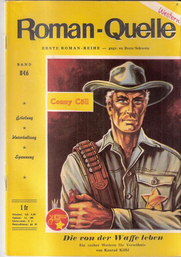 Roman-Quelle Nr. 0846 Titel: Die von der Waffe lebenAutor: Konrad KölblVerlag: Neuzeit verlag MünchenRomanheft 64 SeitenFormat: 15,5 x 22,5 ckZustand: gut, leichte Gebrauchsspuren