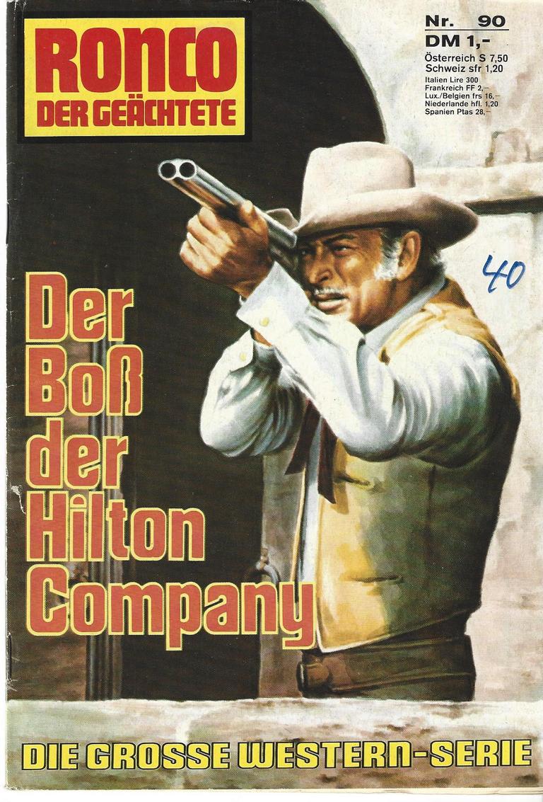 Ronco - Der Geächtete Nr. 90Der Boß der Hilton Company.Autor: Fred WagnerVerlag: Erich Pabel Rastatt 1974Romanhefte 66 SeitenFormat: 15,5 x 22,5 cmZustand: sehr gut