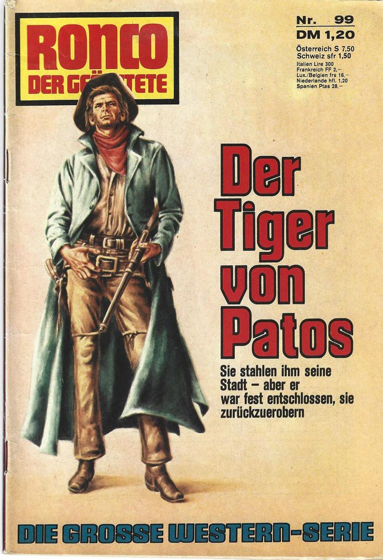 Ronco - Der Geächtete Nr. 99Der Tiger von Patos.Autor: Lee MartinVerlag: Erich Pabel Rastatt 1974Romanhefte 66 SeitenFormat: 15,5 x 22,5 cmZustand: sehr gut