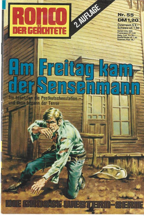 Ronco der Geächtete Nr. 55 / 2. AuflageAm Freitag kam der Sensenmann.von: F. GlaserVerlag: Erich Pabel Verlag, Rastatt 1976Romanheft 66 SeitenFormat: 15,5 x 22 cmZustand: sehr gut
