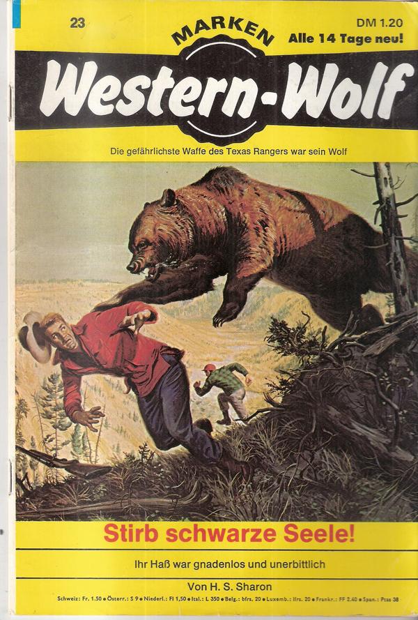 Western Wolf Nr. 23Titel: Stirb schwarze SeeleAutor: S. H. SharonVerlag: Kelter Verlag HamburgRomanheft 66 SeitenFormat: 15,5 x 22,5 cmGewicht: 80 gZustand: leichte Gebrauchsspuren