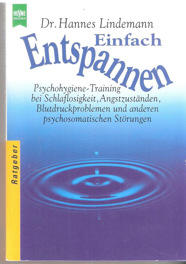 Titel: Einfach Entspannen - Psychohygiene-Training bei Schlaflosigkeit , Angstzuständen, Blutdruckproblemen und anderen psychosomatischen Störungen ISBN 3453081919Autor: Dr. Hannes Lindemann Verlag: Heyne Ratgeber 3. Auflage 1995 Taschenbuch, 249 Seiten Format: 12,5 cm X 18 cm x 1,8 cmGewicht: 220 gZustand: gut