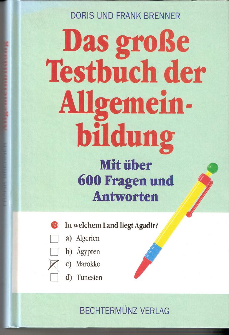 Titel: Das große Testbuch der AllgemeinbildungMit über 600 Fragen und AntwortenISBN 3860475010Autor: Doris und Frank BrennerVerlag: Bechtermünz 1996Hardcover, 304 SeitenFormat: 14,5 cm x 22 cm x 2,5 cmGewicht: 590 gZustand: sehr gut Wissenswertes